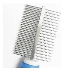 Este peine de acero tiene un mango de plástico y púas de paso grueso y fino. Es ideal para peinar y eliminar el pelo muerto, dejando el pelaje suave y sin nudos.