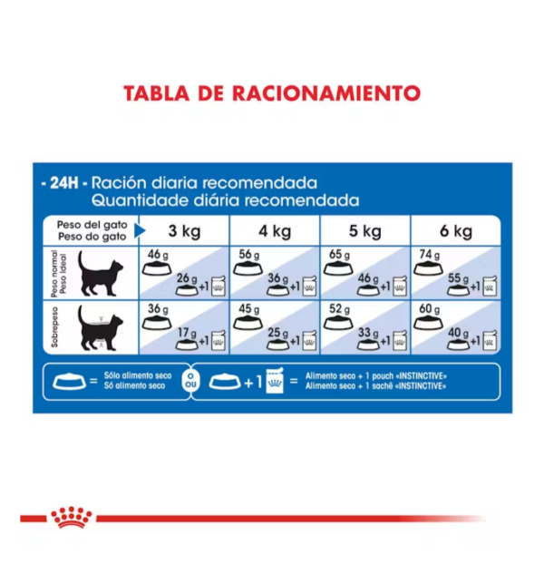 Arroz, maíz, harina de subproductos de pollo, proteína vegetal purificada L.I.P.* (gluten de trigo), celulosa purificada, harina de trigo, grasa vacuna, hidrolizado de hígado de pollo y cerdo, aceite de pollo, levadura de cerveza, pulpa de remolacha, aceite de soja, zeolita, aceite de pescado, vitaminas, fructo-oligosacáridos (FOS), cáscara de psyllium, sales minerales, oligoelementos, taurina, DL-metionina, oligoelementos quelados, L-carnitina. (*) Low Indigestible Protein: proteína seleccionada por su alta asimilación. Vitaminas: Vitamina A, vitamina D3, vitamina C, vitamina E, pantotenato de calcio, niacina, vitamina B1, vitamina B2, vitamina B6, ácido fólico, biotina, vitamina B12, colina. Sales minerales: Sulfato de calcio, cloruro de potasio, fosfato monocálcico, calcita, cloruro de sodio. Oligoelementos: Sulfato de cobre, sulfato de hierro, óxido de manganeso, óxido de zinc, fuente de iodo (iodato de calcio o iodato de potasio), selenio orgánico. Oligoelementos quelados: Cobre, manganeso, zinc. Conservantes y antioxidantes: BHA, galato de propilo y ácido cítrico.