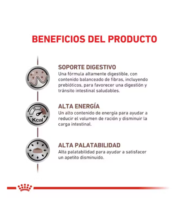 Alimento completo para gatos, formulado para ayudar en el manejo de los trastornos agudos de absorción intestinal y promover la restauración nutricional y convalecencia. Ingredientes altamente digestibles. Elevados niveles de electrolitos y nutrientes esenciales. Densidad energética elevada.