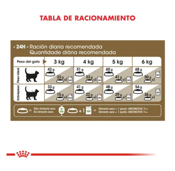 Aislado de proteínas vegetales*, harina de trigo precocida, grasas animales (pollo y cerdo), proteínas de ave deshidratadas (pollo y pavo), arroz, maíz, fibras vegetales, hidrolizado de proteínas de pollo, pulpa de achicoria, minerales, aceite de pescado, aceite de soja, levaduras, tomate (fuente de licopeno), fructo-oligosacáridos, semillas e integumentos de psyllium,manano-oligosacáridos (MOS), hidrolizado de crustáceos (fuente de glucosamina), aceite de borraja, extracto de rosa de la India (fuente de luteina), hidrolizado de cartílago (fuente de condroitina).* L.I.P.: Proteína seleccionada por su elevada digestibilidad. Vitaminas: Vitamina A, vitamina D3, vitamina E, vitamina C, pantotenato de calcio, niacina, vitamina B1, vitamina B2, vitamina B6, ácido fólico, biotina, vitamina B12, colina. Sales minerales: Sulfatode calcio, cloruro de potasio, citrato de potasio. Oligoelementos: Sulfato de cobre, sulfato de hierro, óxido de manganeso, óxido de zinc, fuente de iodo (iodato de calcio o iodato de potasio). Oligoelementos quelados: Cobre, manganeso, zinc.