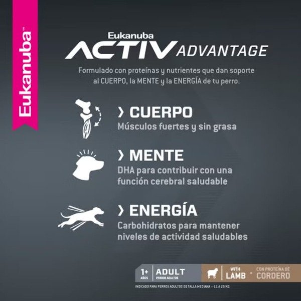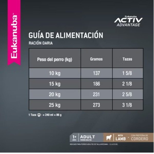Adult Lamb es una fórmula para perros adultos de raza mediana (entre 11 a 25 kg).