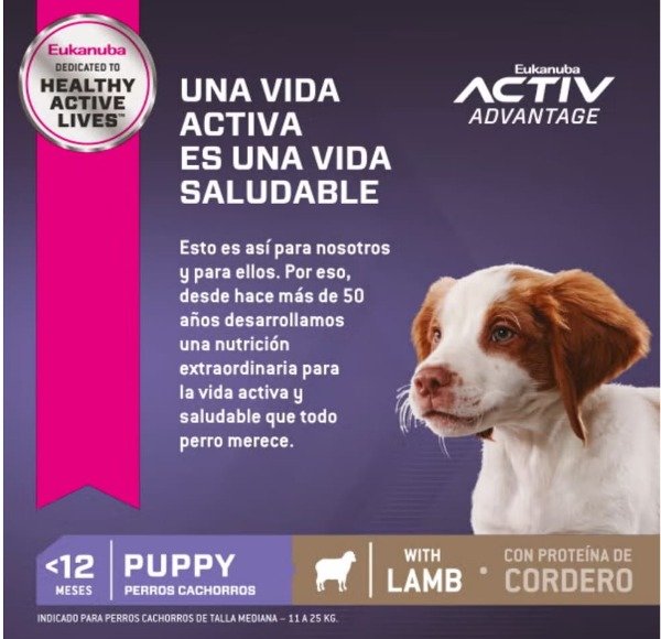 Puppy Lamb es una fórmula para es una fórmula para cachorros de raza mediana (entre 11 a 25 kg).