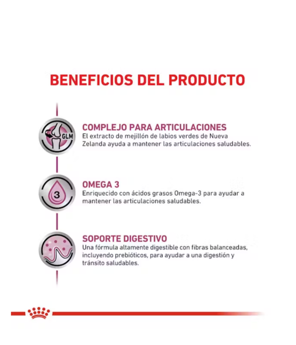 Alimento para perros adultos formulado para contribuir al mantenimiento de la salud articular, como apoyo nutricional en enfermedades articulares y en la recuperación de cirugías ortopédicas