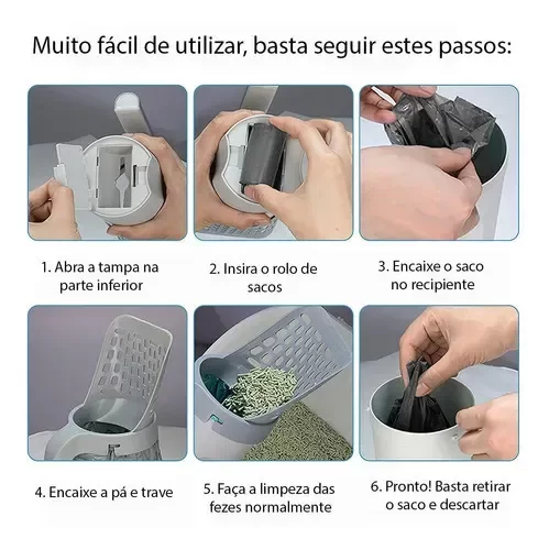 Este producto incluye bolsas higiénicas, que se pueden guardar en el dispensador integrado para facilitar su uso. La pala colectora con dispensador Cata Caca es una herramienta indispensable para mantener el medio ambiente limpio y libre de olores desagradables, ya sea en casa, en el parque o durante las excursiones.