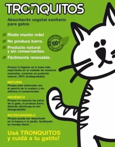 Tronquitos logra atrapar mas eficientemente los olores y es mas absorbente. Se reemplaza solo el sector utilizado y no toda la bandeja. No ensucia las patas de tu gato, ni produce barro.